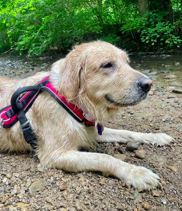 The real moment of change happened on a walk near two of Drizzle’s biggest triggers, water and other dogs. Water excited her to the point of frenzy, and other dogs made her anxious. In the past, she would have lunged, pulled, and barked. But on this day, she stayed with her guardian and checked in. Even as other dogs barked at her, she looked at them, then turned to her guardian and waited. A treat was offered. They moved on. At the end of the trip, Drizzle got her time in the water.